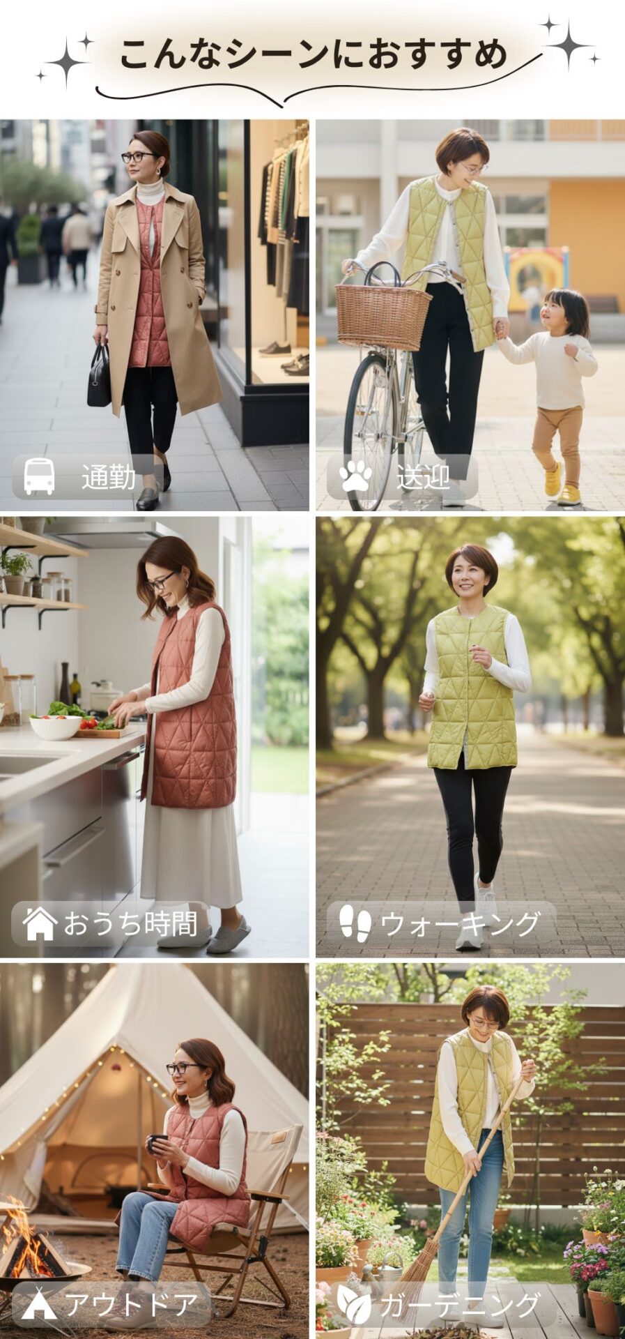 アウターとしてもインナーとしても使える、便利なダイヤ柄ロングダウンベスト。腰までしっかりとカバーしてくれるロング丈で、暖かさをキープしながらスッキリとしたシルエットを演出します。軽やかなデザインで、ちょっとしたお出かけにもぴったりな一枚です。季節の変わり目に活躍すること間違いなしのアイテムです。