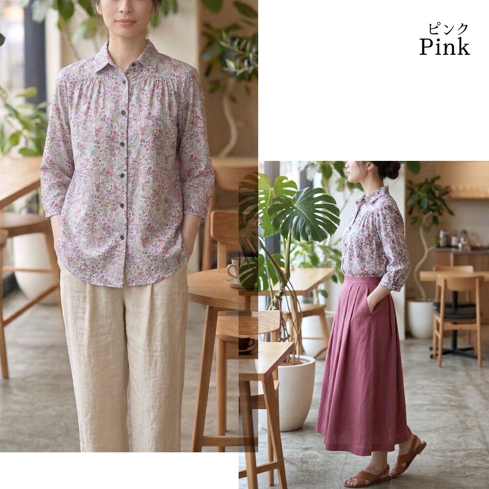 日差しも安心!軽やかに着映える小花柄ブラウス
