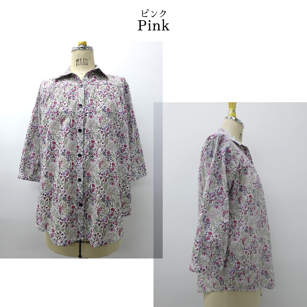 UV対策 花柄 フラワープリント 七分袖 ブラウス 羽織り コットン 綿100%