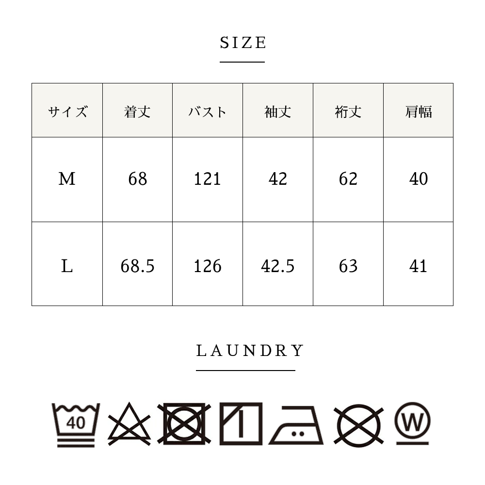 (L) 着丈:68.5 バスト:126 肩幅:41 袖丈:42.5 裄丈:63